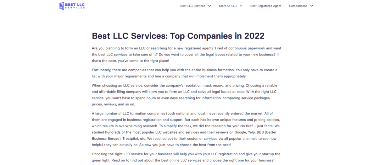 BestLLC.Services is a fast and affordable provider of comprehensive LLC formation services across all 50 states. The company is an excellent choice for entrepreneurs seeking a good balance of features and a solid customer experience without a high cost.